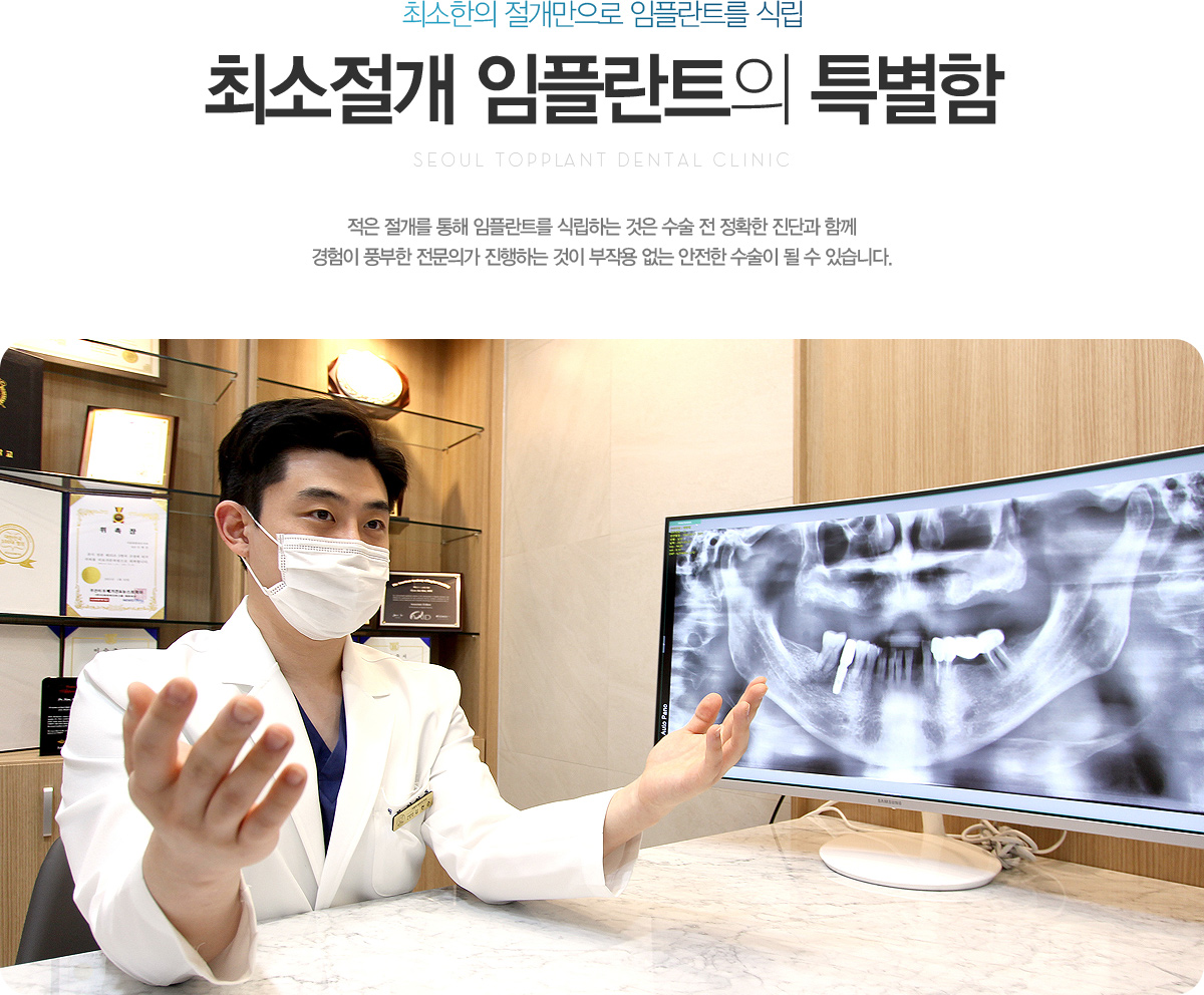 º¸Åë ÀÓÇöõÆ®¸¦ ½Ä¸³ÇÒ ¶§ ÀÕ¸öÀ» Àý°³ÇÏ¿© ¼ö¼úÇÏ°Ô µË´Ï´Ù. ÇÏÁö¸¸ ÀÌ·¯ÇÑ ÀÕ¸ö Àý°³´Â ÀÕ¸ö¿¡ »óó¸¦ ³»´Â °ÍÀ̹ǷΠº×°í ¿­ÀÌ ³ª°Ô µË´Ï´Ù. µû¶ó¼­ Àý°³¸¦ ÇÏÁö ¾Ê°Å³ª ÃÖ¼ÒÇÑÀÇ Àý°³¸¸À¸·Î ÀÓÇöõÆ®¸¦ ½Ä¸³ÇÏ´Â °ÍÀÌ ÅëÁõÀ» ÁÙÀ̰í ȸº¹ ±â°£À» ÁÙÀÏ ¼ö ÀÖ½À´Ï´Ù. ÀÌ·¯ÇÑ ÃÖ¼ÒÀý°³ ÀÓÇöõÆ®´Â ¸ðµç °æ¿ì¿¡ °¡´ÉÇÑ °ÍÀº ¾Æ´Õ´Ï´Ù. ÀÕ¸ö»À°¡ °Ç°­ÇÏÁö ¾Ê¾Æ À̽ÄÀÌ ÇÊ¿äÇϰųª, ÀÕ¸ö¿¡ ¿°ÁõÀÌ ÀÖ¾î ¿°ÁõÀ» Á¦°ÅÇØ¾ß ÇÏ´Â °æ¿ì, ÀÕ¸ö ¸ð¾ç¿¡ ¹®Á¦°¡ ÀÖ¾î ÀÓÇöõÆ® ¼ö¼ú°ú ÇÔ²² ¸ð¾çÀ» º¯Çü½Ã۰íÀÚ ÇÏ´Â °æ¿ì µî¿¡´Â Àý°³¸¦ ÅëÇÑ ÀÓÇöõÆ®¸¦ ½ÃÇàÇÏ°Ô µË´Ï´Ù.