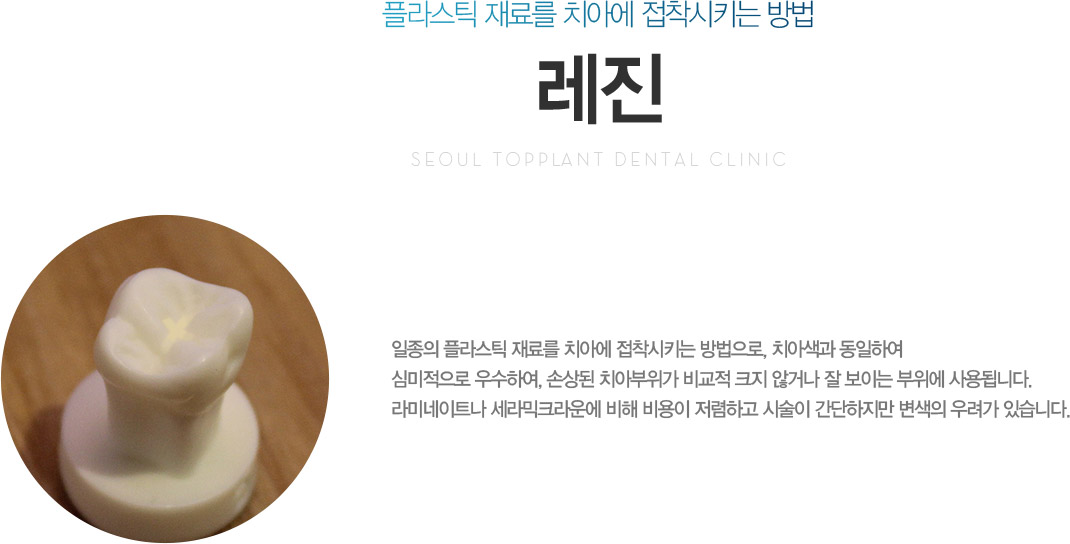 ÀÏÁ¾ÀÇ ÇÃ¶ó½ºÆ½ Àç·á¸¦ Ä¡¾Æ¿¡ Á¢Âø½ÃŰ´Â ¹æ¹ýÀ¸·Î, Ä¡¾Æ»ö°ú µ¿ÀÏÇÏ¿© ½É¹ÌÀûÀ¸·Î ¿ì¼öÇÏ¿©, ¼Õ»óµÈ Ä¡¾ÆºÎÀ§°¡ ºñ±³Àû Å©Áö ¾Ê°Å³ª Àß º¸ÀÌ´Â ºÎÀ§¿¡ »ç¿ëµË´Ï´Ù.