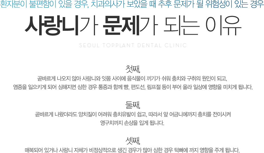 ù°, °ð¹Ù¸£°Ô ³ª¿ÀÁö ¾Ê¾Æ »ç¶û´Ï¿Í ÀÕ¸ö »çÀÌ¿¡ À½½Ä¹°ÀÌ ³¢±â°¡ ½¬¿ö ÃæÄ¡¿Í ±¸ÃëÀÇ ¿øÀÎÀÌ µÇ°í, ¿°ÁõÀ» ÀÏÀ¸Å°°Ô µÇ¾î ½ÉÇØÁö¸é ½ÉÇÑ °æ¿ì ÅëÁõ°ú ÇÔ²² »´, Æíµµ¼±, ¸²ÇÁÀý µîÀÌ ºÎ¾î ¿Ã¶ó ÀÏ»ó¿¡ ¿µÇâÀ» ¹ÌÄ¡°Ô µË´Ï´Ù.