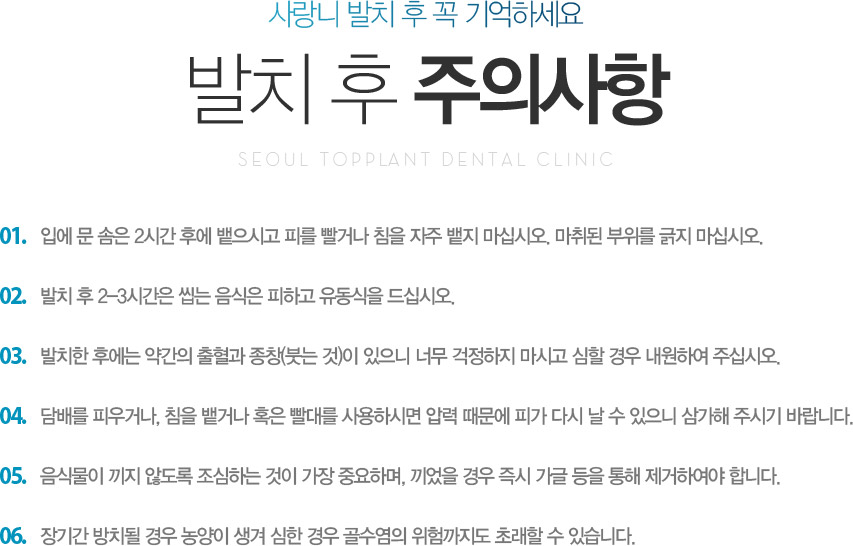 3. ¹ßÄ¡ÇÑ ÈÄ¿¡´Â ¾à°£ÀÇ ÃâÇ÷°ú Á¾Ã¢(º×´Â °Í)ÀÌ ÀÖÀ¸´Ï ³Ê¹« °ÆÁ¤ÇÏÁö ¸¶½Ã°í ½ÉÇÒ °æ¿ì ³»¿øÇÏ¿© ÁֽʽÿÀ.